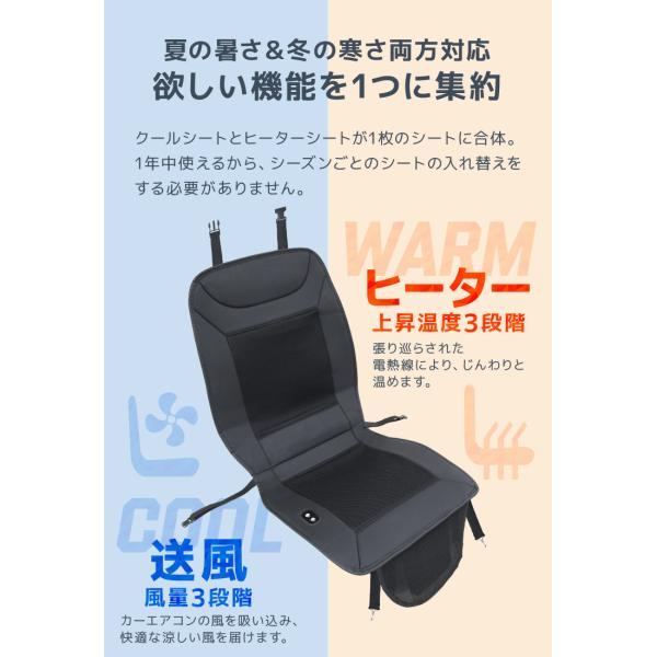 シートヒーター クールシート 車用シートカバー 送風 ヒーター搭載 ホット 快適 速暖 涼風 温度調整3段階 メッシュ通気性 クッション 簡単取付