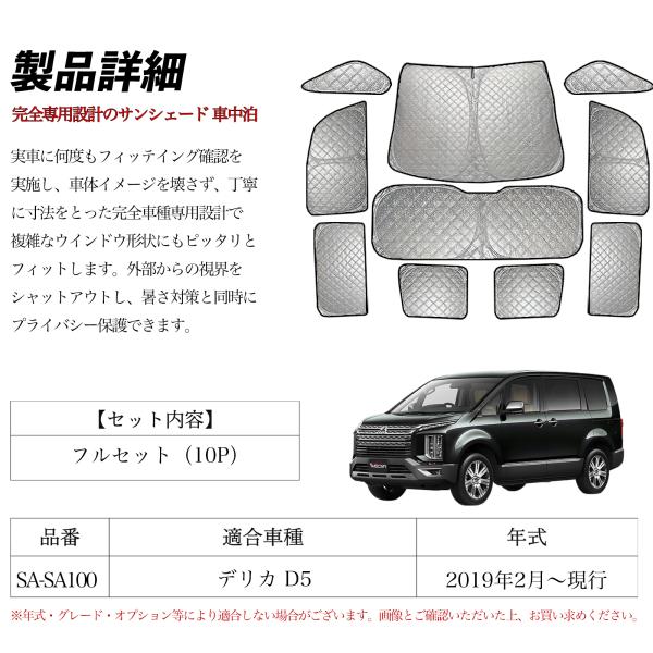 デリカ D5 専用 サンシェード 全窓対応 車中泊 サイドサンシェード 遮光シェード UVカット 日除け暑さ対策 仮眠 断熱 遮光 全窓セット