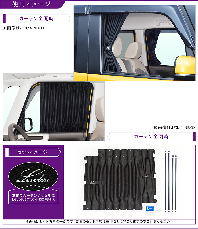 NBOX JF3/4/5/6系 フロントカーテン|ホンダ N-BOXカスタム NBOXJOY アクセサリー カスタムパーツ サンシェード 車中泊グッズ 防災グッズ|Levolva 車用カーテン