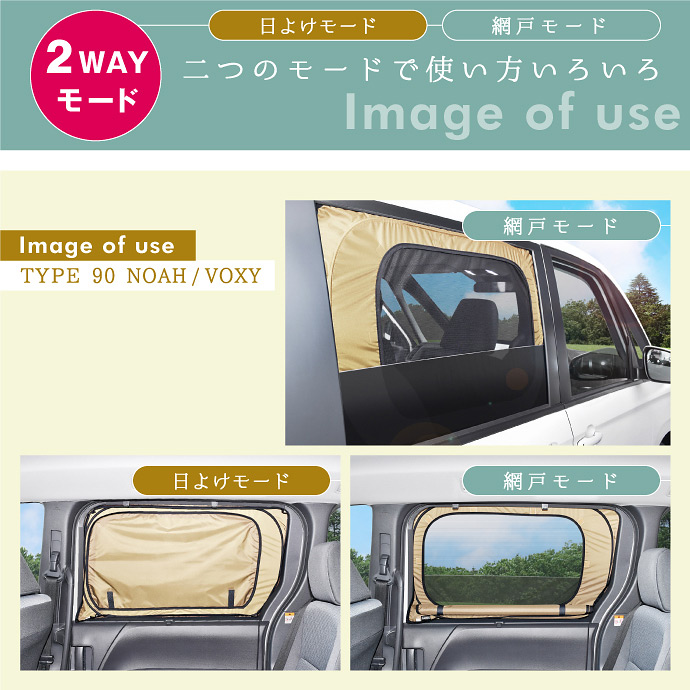 ノア ヴォクシー 90系 95系 2WAY網戸シェード|車用網戸 虫よけ 日よけ ウィンドーバグネット 車用メッシュネット 車中泊グッズ カーシェード|LEVOLVA OUTDOOR