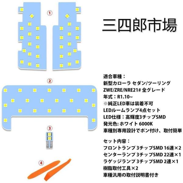 LEDルームランプ LEDバルブ 新型 カローラ セダン ツーリング 室内灯 ホワイト 白 6000K 専用設計 爆光 全グレード対応 カスタム 内装パーツ 取付簡単