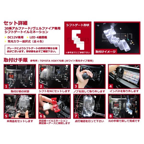 【選べるカラー4色】 トヨタ アルファード ヴェルファイア 30系 LEDシフトゲートイルミネーション H27.1〜 シフトイルミ ブルー ホワイト