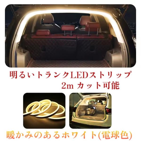 トランク用 LED ライト ストリップ 12Vトランクランプ 車 室内灯 ルームランプ 車内 照明 車用 カット可能 汎用 防水 2m 電球色