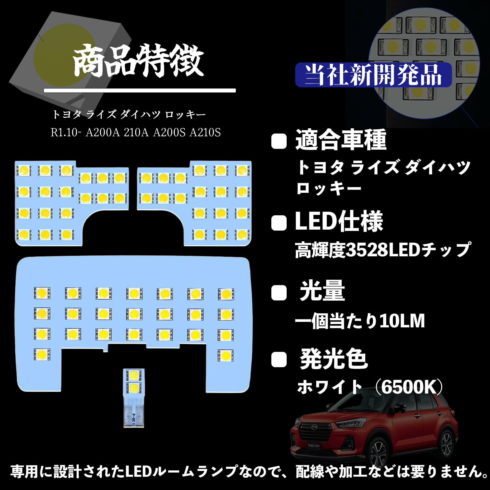 トヨタ ライズ ダイハツ ロッキー A200A 210A A200S A210S 専用設計 LED ルームランプ 室内灯 爆光 高輝度 ホワイト ledライト 5050SMD カスタムパーツ 取付簡単