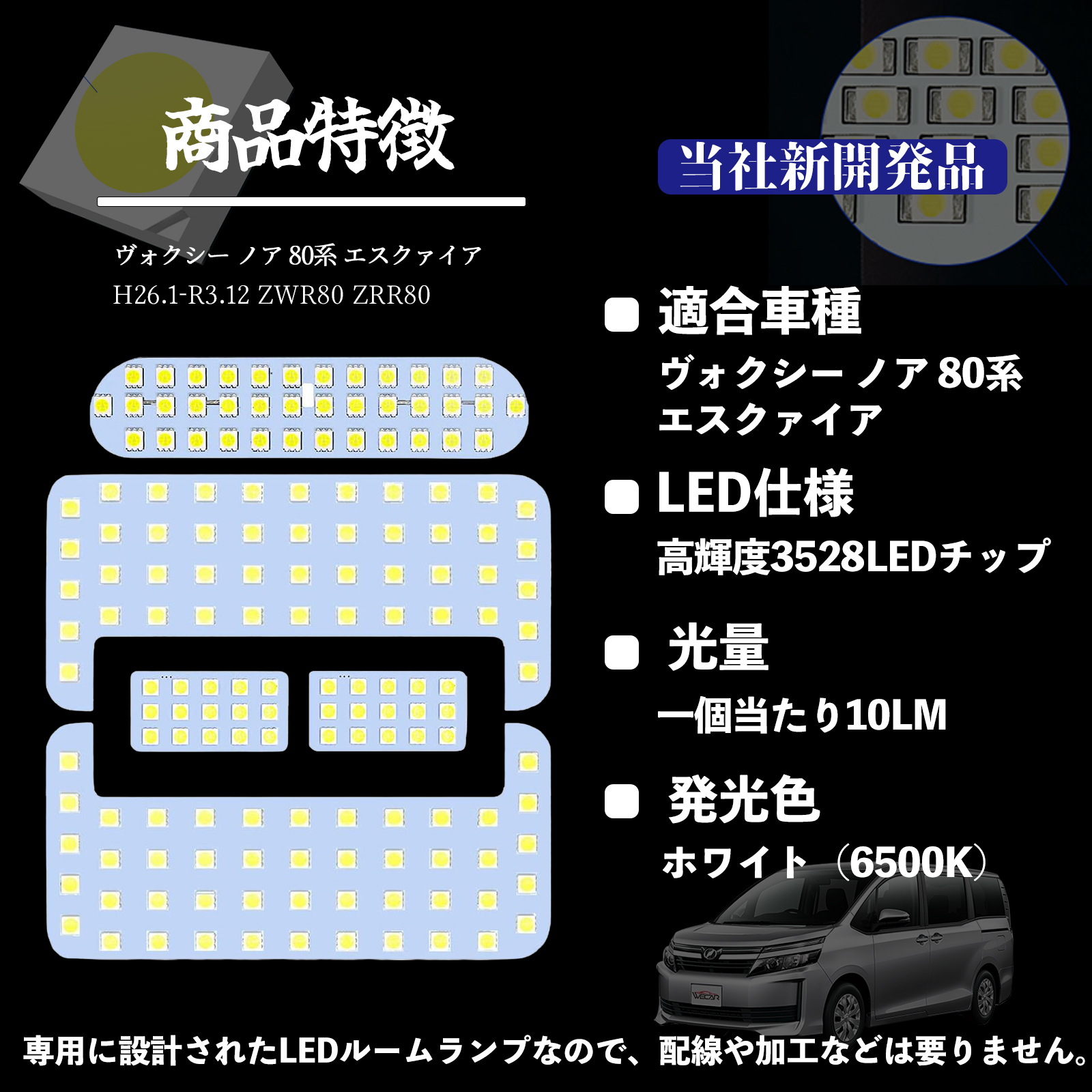 ヴォクシー ノア 80系 エスクァイア ZWR80 ZRR80 専用設計 LED ルームランプ 室内灯 爆光 高輝度 ホワイト ledライト 5050SMD カスタムパーツ 取付簡単 WeCar