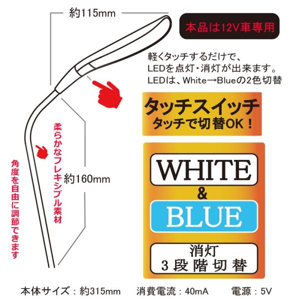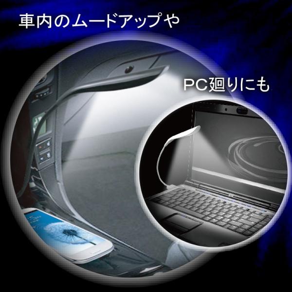12V 車用 LEDイルミネーション USB フレキ LEDライト ホワイト/ブルー 本体色 艶消しブラック PL-35