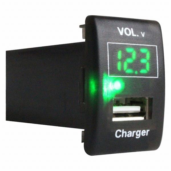 スズキAタイプ エブリイワゴン DA64W H17.8〜 LED発光:グリーン 電圧計表示 USBポート 充電 12V 増設 パネル USBスイッチホールカバー