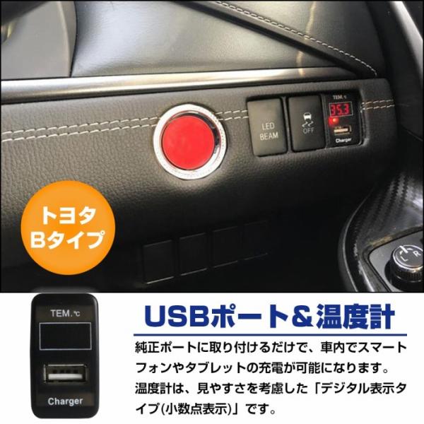 トヨタBタイプ FJクルーザー GSJ15W H22.10〜 LED/ホワイト 温度計+USBポート 充電 12V 2.1A 増設 パネル USBスイッチホールカバー 電源
