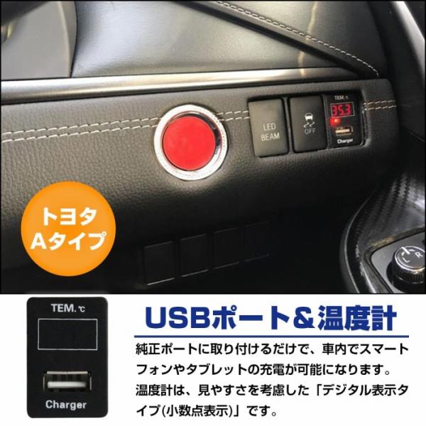 トヨタAタイプ 86 ハチロク ZN6 H24.4〜 LED/レッド 温度計+USBポート 充電 12V 2.1A 増設 パネル USBスイッチホールカバー 電源