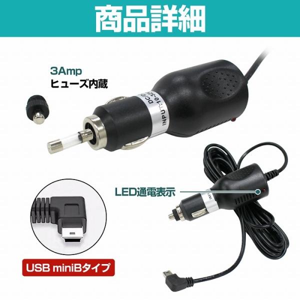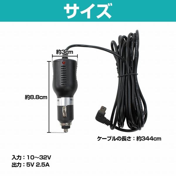 シガーソケット 電源 miniUSB L字 3.5m 12V 24V ミニUSB 出力 シガー アダプター 車載 モニター 急速 充電 L型