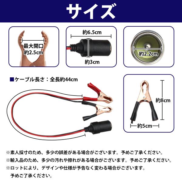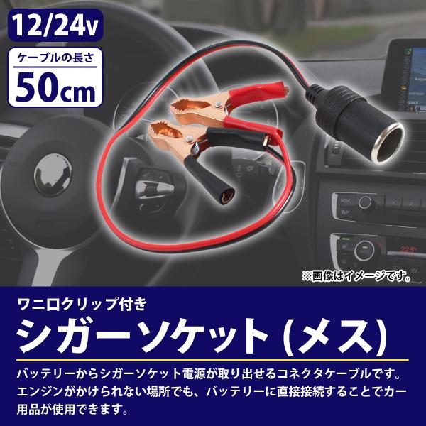 50CM 12V/24V ワニ口 クリップ シガーソケット メス プラグ バッテリー 直結 電源 検品 動作確認 シガー コネクタ 車 バイク