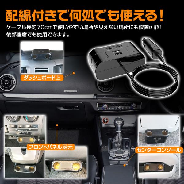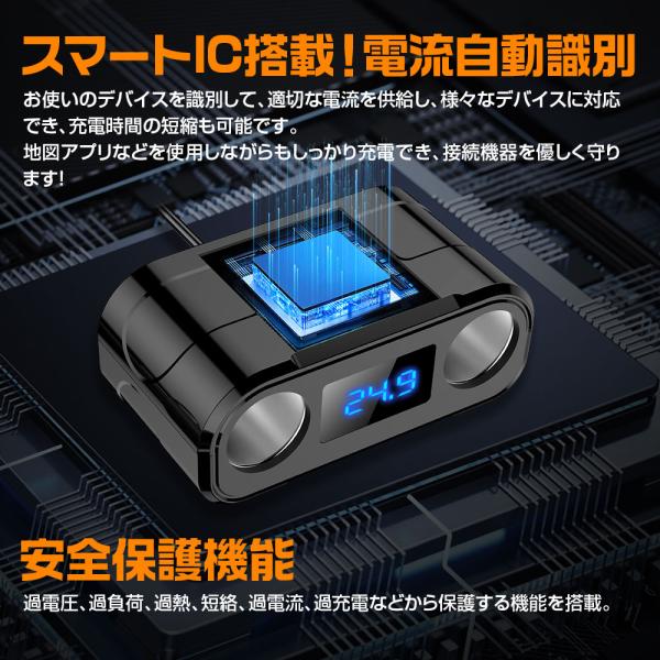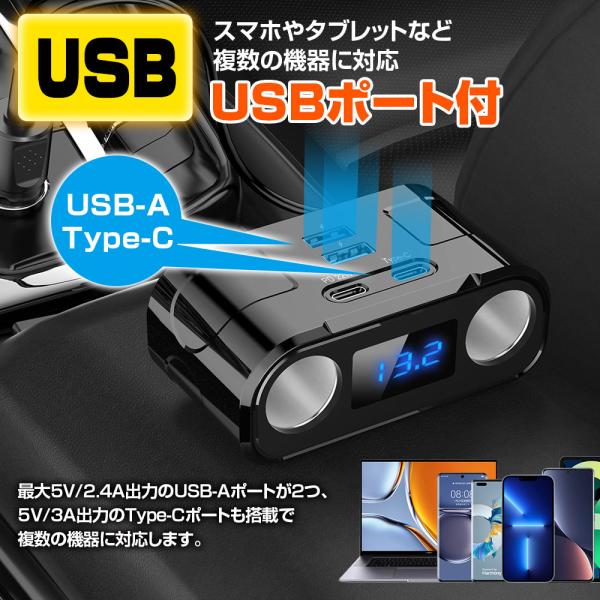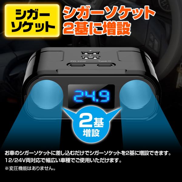 シガーソケット 2連 車載充電器 急速 12V 24V カーチャージャー PD 22W タイプC USB スマート識別 iPhone16 Android