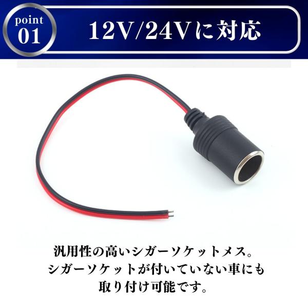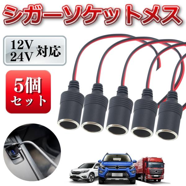 シガーソケット メス 12V 24V 5個 電源 スマホ充電 増設 ドラレコ カーナビ ドライブレコーダー 汎用