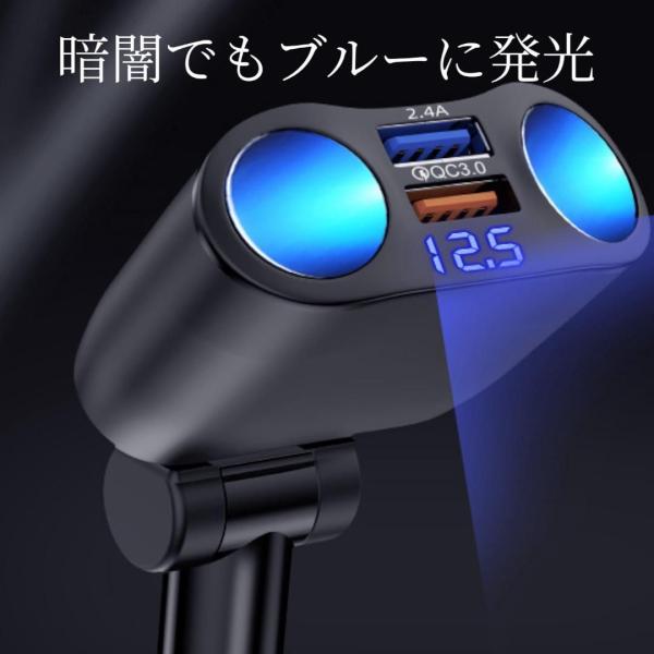 シガーソケット 車載 充電器 2連 USBポート カーチャージャー QC3.0 急速充電 12V 24V 角度調整 LED 高速 増設 ブラック】