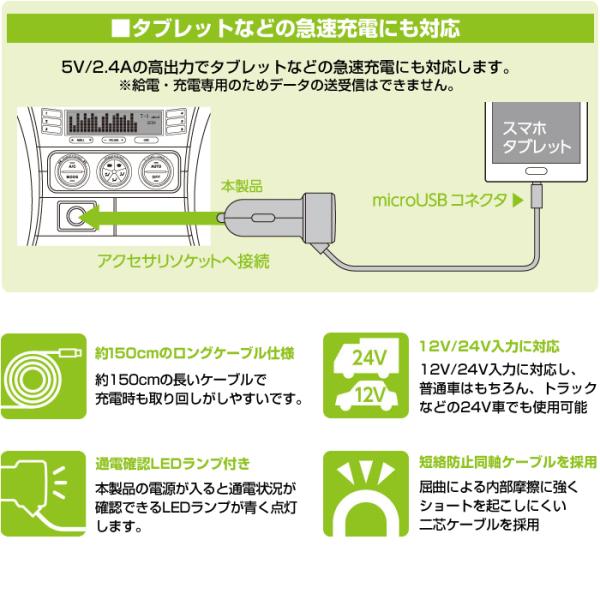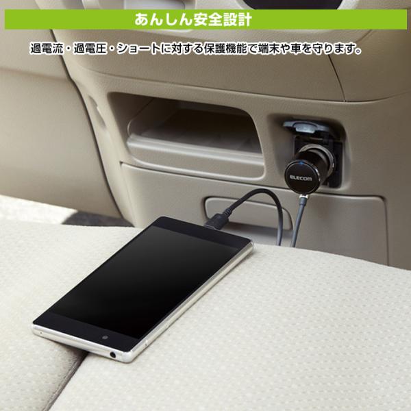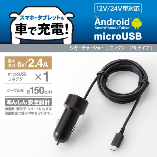 エレコム シガーチャージャー(ロングケーブルタイプ)12V/24V車対応 5V/2.4A microUSBコネクタ×1 ケーブル150cm 充電 スマホ タブレット ブラック MPA-CCM01BK