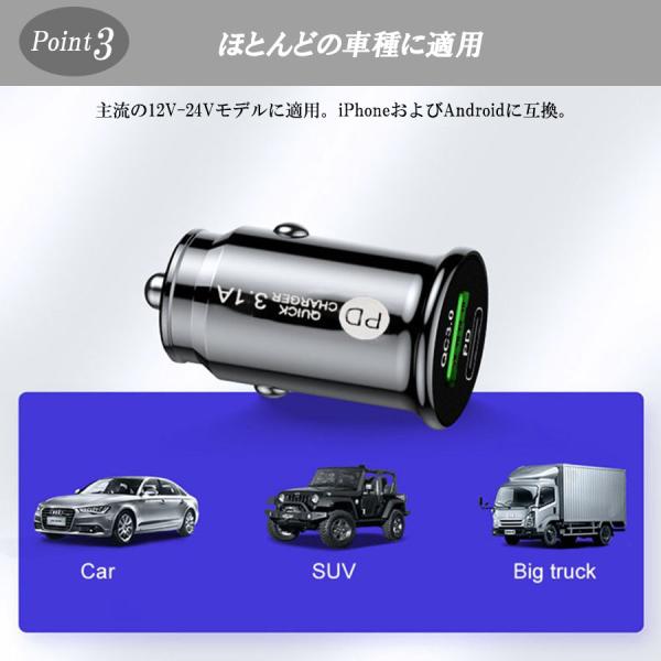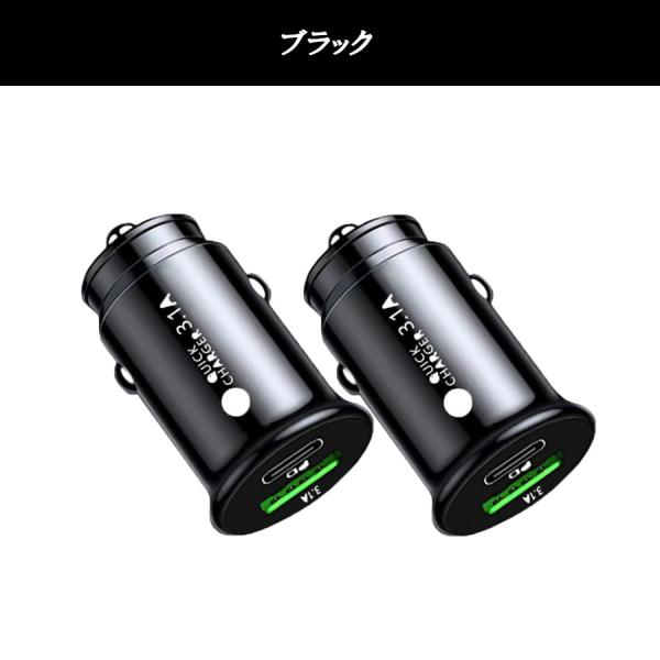 シガーソケット usb 2個セット 車載 小型 車 増設 変換 急速 充電器 2連 2口 iphone タイプc PD type-c 小型 12V 24V 携帯充電器