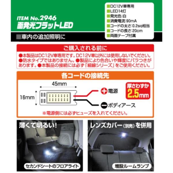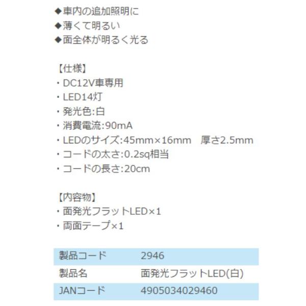 2946 面発光フラットLED(白) エーモン工業 面全体が明るく光る コンビニ受取不可 ゆうパケット発送
