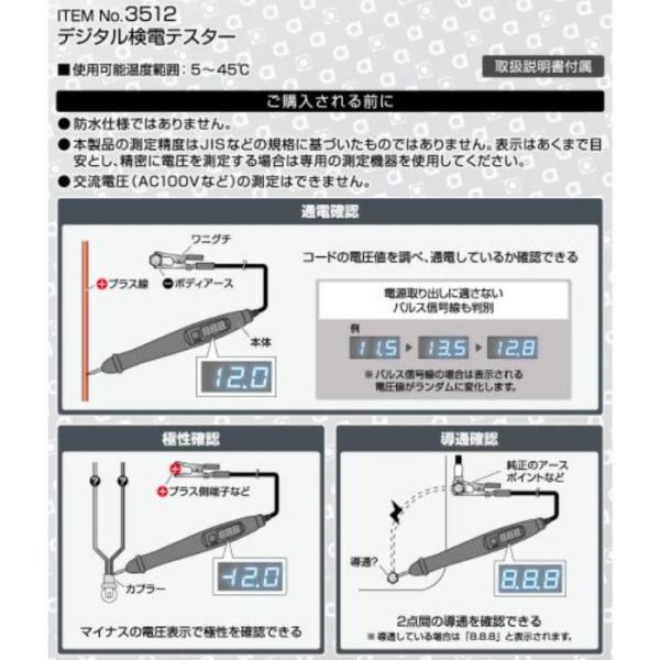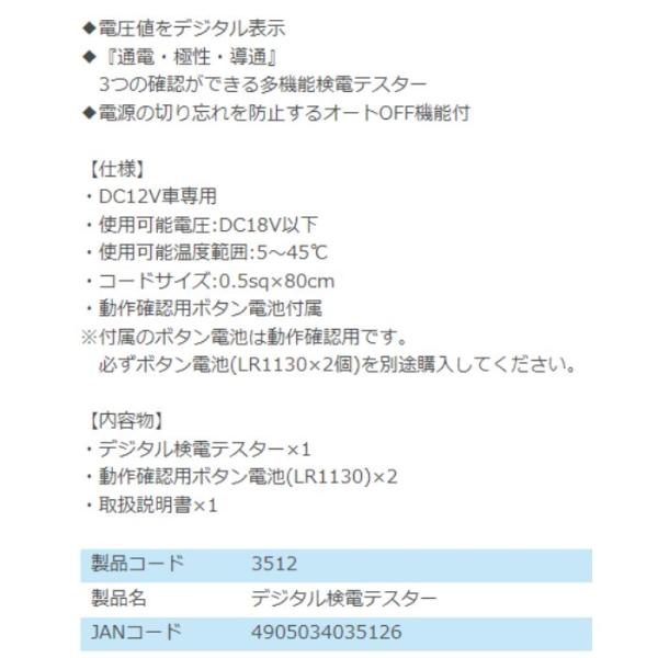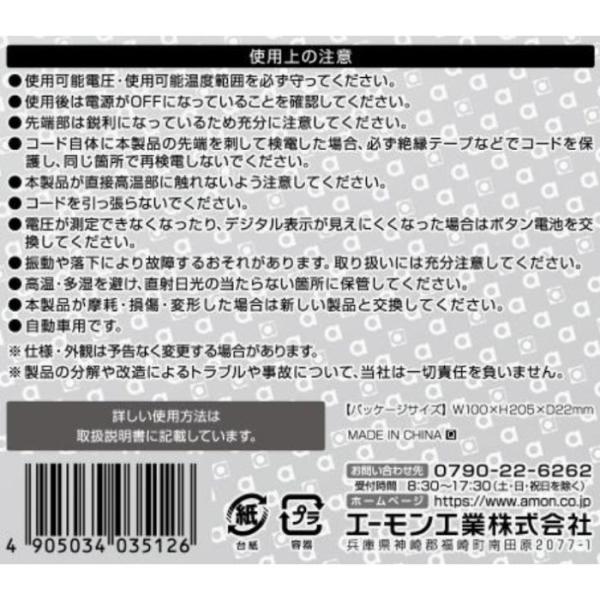 3512 デジタル検電テスター エーモン工業 電圧値をデジタル表示 コンビニ受取不可 ゆうパケット対応
