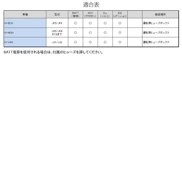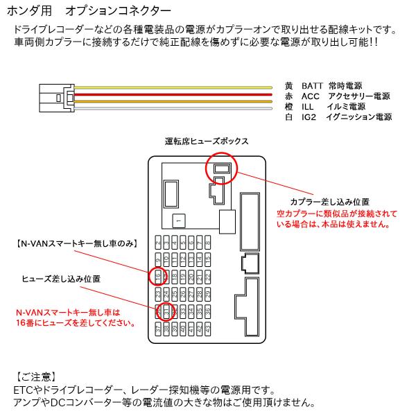 オプションカプラー JF3 JF4 N-BOX JH3 JH4 N-WGN JJ1 JJ2 N-VAN オプションコネクター 電源取り出しハーネス ホンダ用 I-589