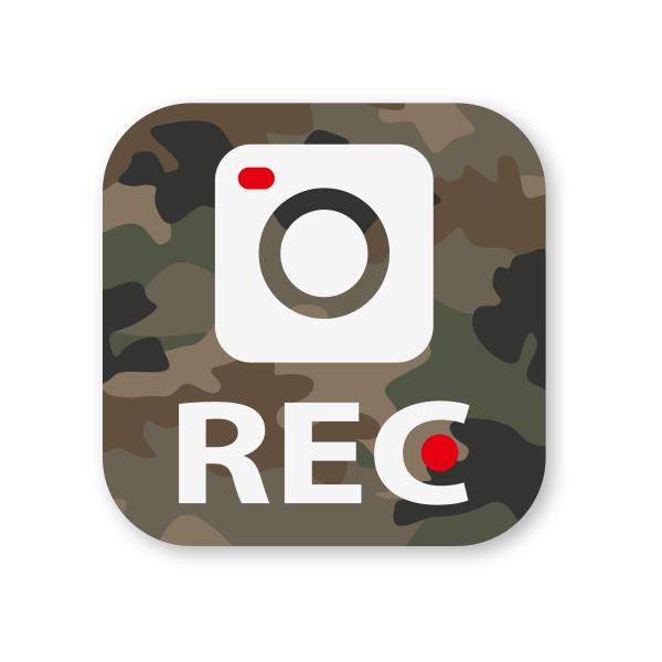 ドラレコステッカー ドライブレコーダーステッカー(スクエアRECウッドランドカモ) Mサイズ 再帰反射 ドラレコ ダミー 迷彩