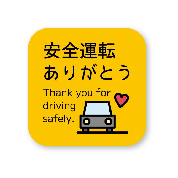 安全運転ありがとうステッカー(しかく) Sサイズ 再帰反射 フィアット FIAT 500 500c 500e に