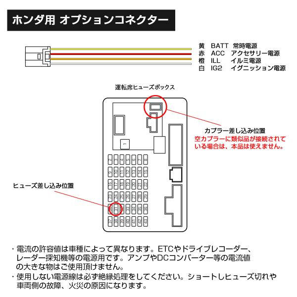 オプションカプラー ホンダ用 電源取り出しハーネス コネクター N-BOX JF3 JF4 N-WGN JH3 JH4 N-VAN JJ1 JJ2 I-589