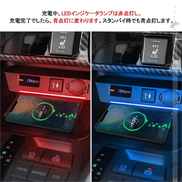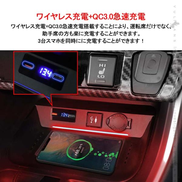 新型RAV4 50系 車載ワイヤレス充電器 QI充電+QC3.0急速充電 無線充電器 車載QI 急速充電器 QC3.0 取付簡単 異物検査機能