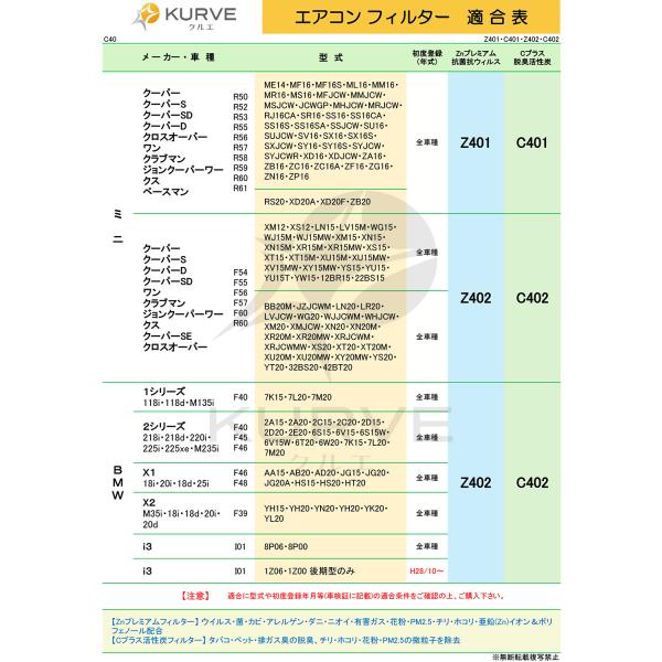 ミニ エアコンフィルター 脱臭 花粉 MINI R50 R52 R53 R55 R56 R57 R58 R59 R60 R61 クーパー S SD D クロスオーバー ワン ジョンクーパー 他 KURVE クルエ C401