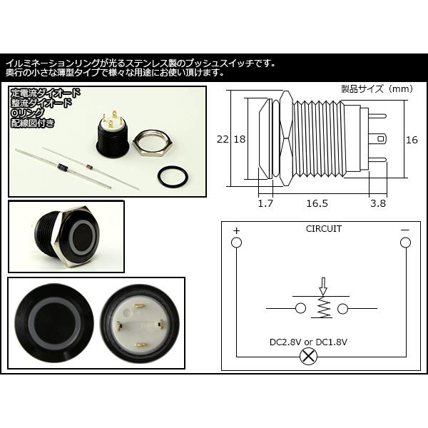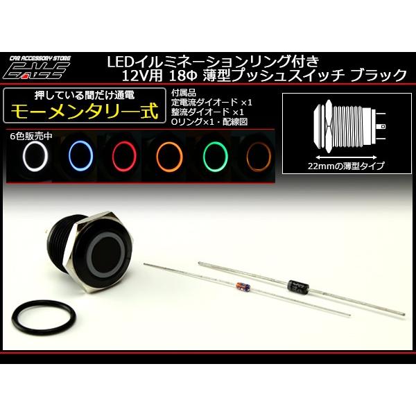 LEDリング付き ブラックボディ 薄型 プッシュスイッチ モーメンタリ―式 防水型 12V I-162