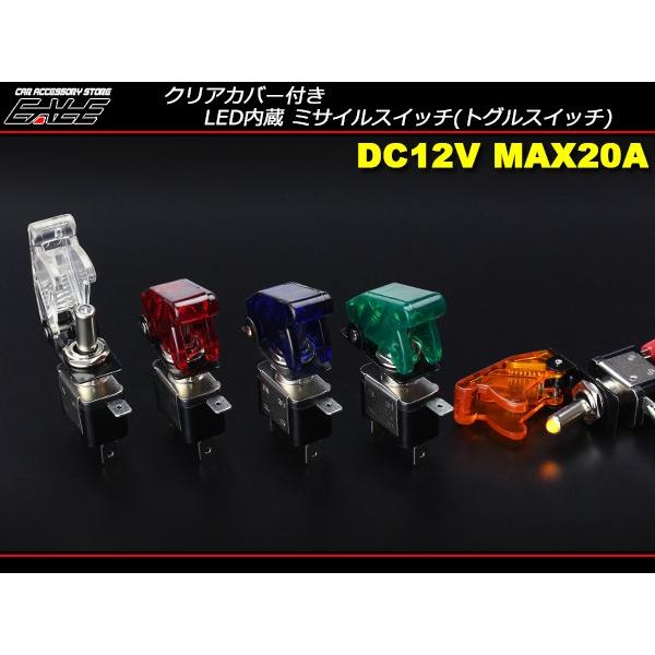 LED 内蔵 ミサイルスイッチ トグルスイッチ 12V ホワイト / レッド / ブルー / グリーン / オレンジ I-270
