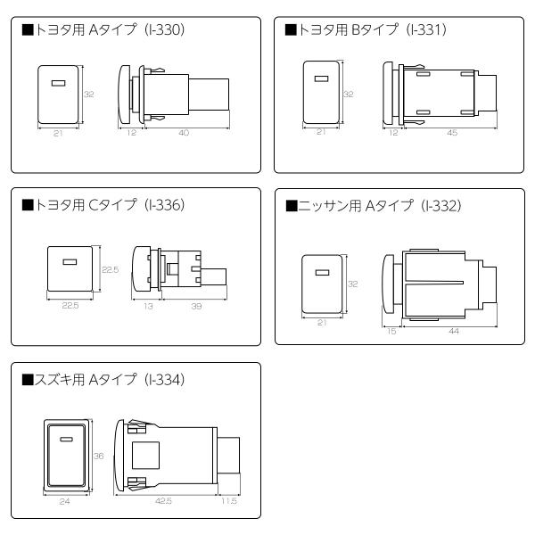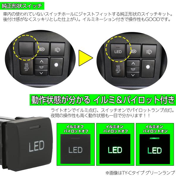 純正風スイッチ トヨタCタイプ 純正スイッチホール対応 LEDパイロットランプ付き 汎用 適合多数 I-336-1