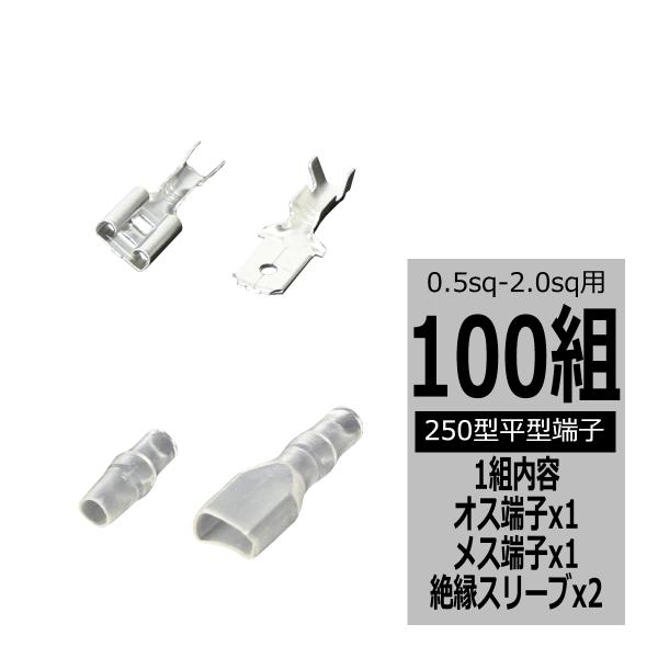 250型 平型端子 オス・メス 絶縁スリープ セット 汎用 ギボシ端子 100セット IZ073