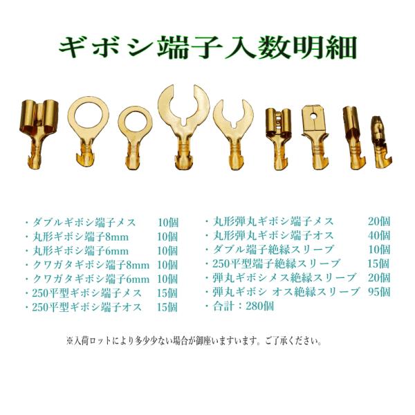 ギボシ端子 5種類セット ダブル端子 丸形端子 クワ型端子 6.3平型端子 弾丸端子 絶縁スリーブ 280個