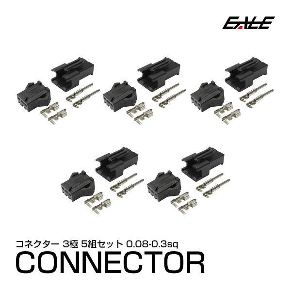3極 細線用 小型汎用コネクター オス・メス 5組セット I-38