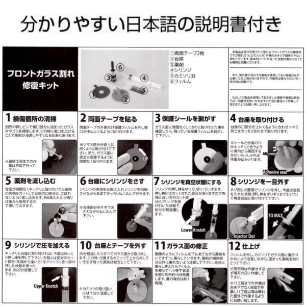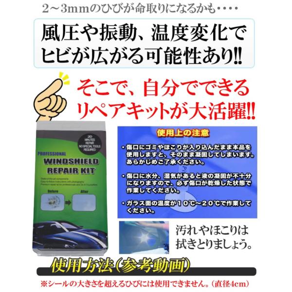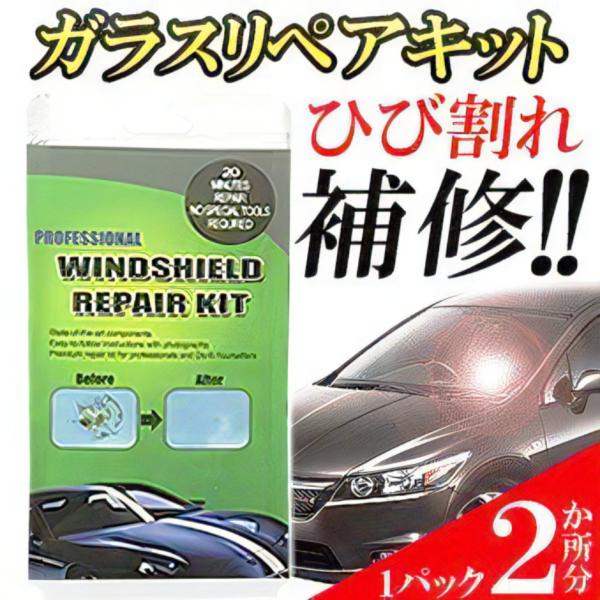 フロント ガラス ひび 割れ 補修 リペア キット 2ヶ所分 飛び石 車用 窓 傷 キズ ヒビ 簡易 修理 修復 直し レジン 凝固 穴 埋め 応急 処置 車 カー 用品 HIBIRI