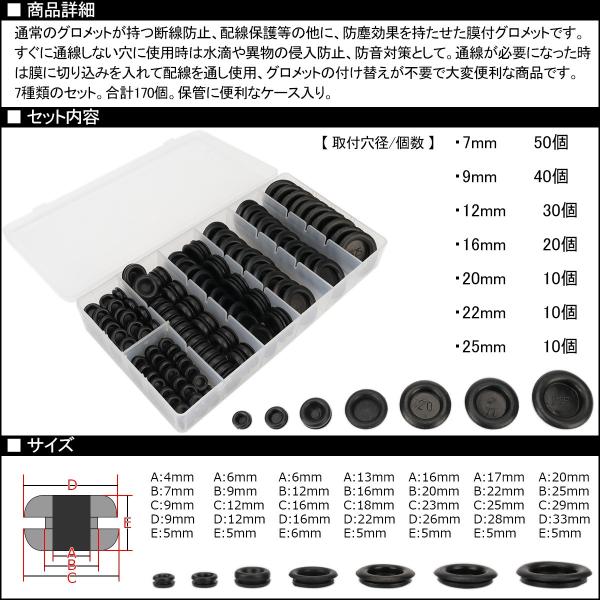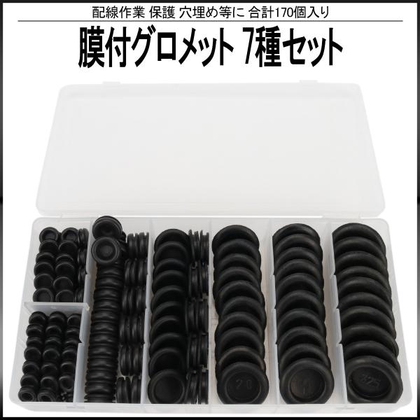 膜付 ラバー グロメット 7種類 170個 セット ケース入り 配線 作業 保護 穴埋め 等に I-512