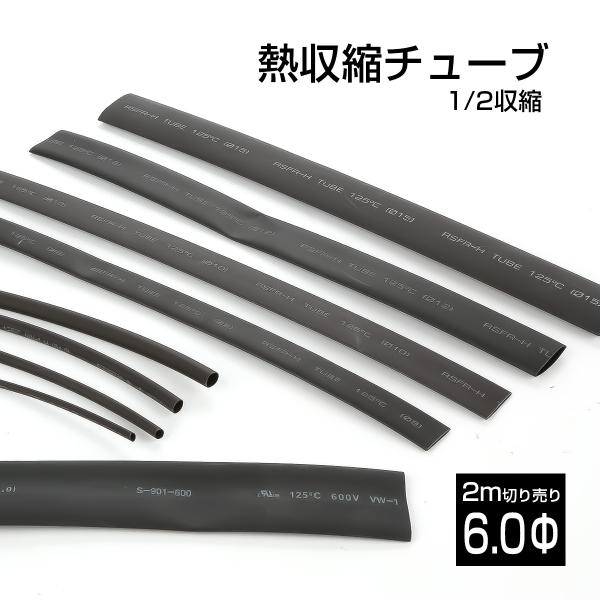熱収縮チューブ 内径6.0mm Φ6.0mm 2m切り売り ブラック 黒 収縮率2:1 絶縁 配線保護 ヒートシュリンク DIY RSFR-H 電線補修 I-615