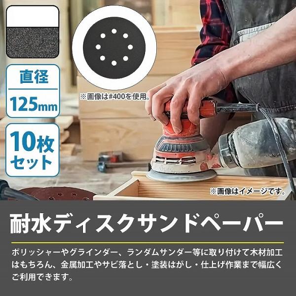 耐水 サンドペーパー #240-#3000 全10種 各10枚セット 125mm 丸型 8穴 サンダー マジックパッド ディスク ペーパー 紙やすり