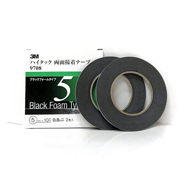 3M 9708 ハイタック両面接着テープ ブラックフォームタイプ 厚み0.8mm 幅5mm 2巻入り 1箱/住友スリーエム(ゆうパケット発送)