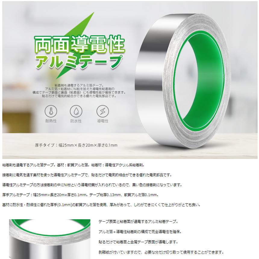 5個セット 導電性アルミテープ 幅25mm×長さ20m×厚さ0.1mm アルミ箔 粘着テープ 導電 アルミテープ 静電気除去 耐熱 強粘着 厚手 両面伝導性 RUMITAPE