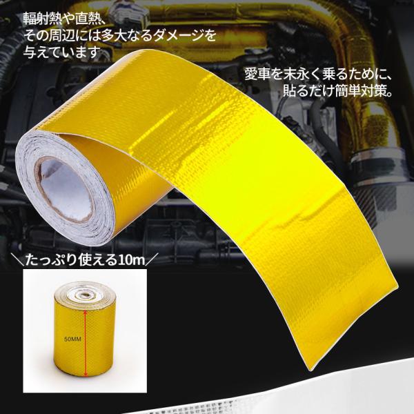 耐熱 テープ サーモ バンテージ アルミ箔 断熱 反射熱 長さ 10m 幅 5cm タイラップ シールドラップ 粘着 インテークパイプ エンジン バイク 車 マフラー TAITAPE