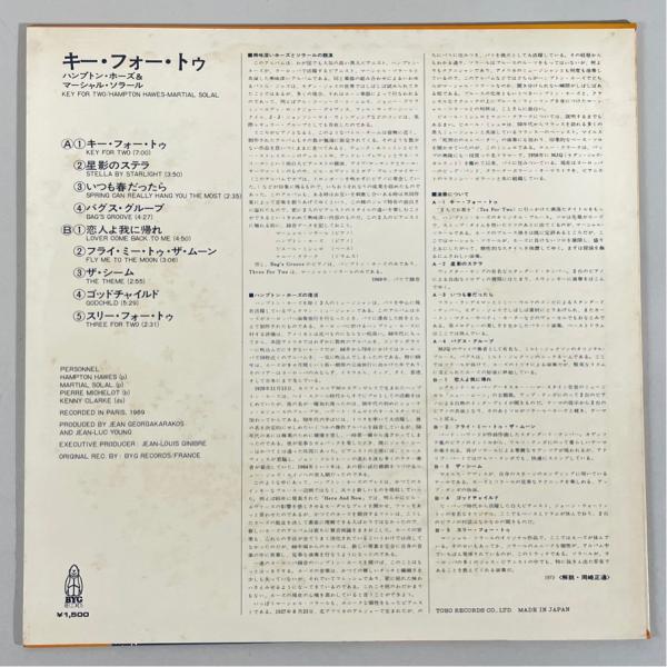 国内盤 YX-2011 HAMPTON HAWES MARTIAL SOLAL キー・フォー・トゥ 洗浄済 LP