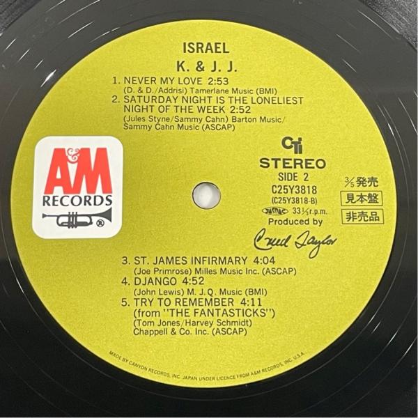 C25Y3818 ISRAEL 見本盤 帯あり K&J.J. イスラエル 洗浄済 LP