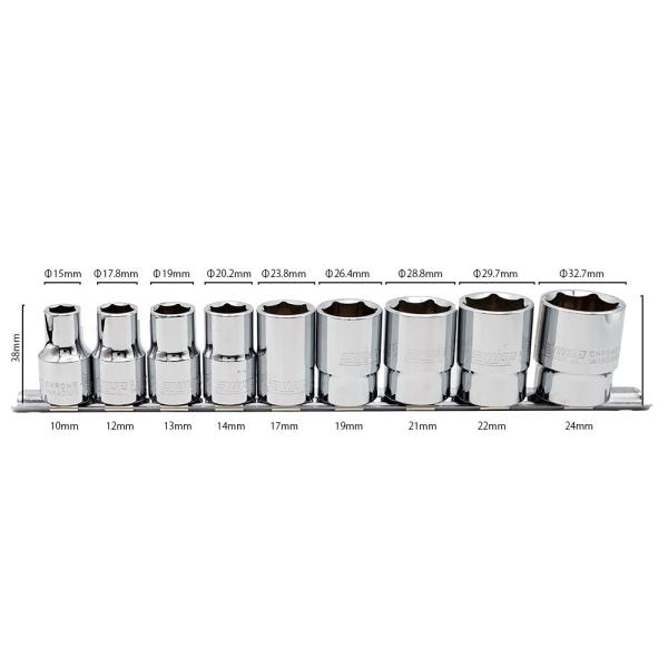PWT 1/2インチ 12.7mm ソケットセット 9本組 スタンダード 六角ソケット 面接触構造 自動車 バイク 整備工具 クロームバナジウム鋼 ISS12SET