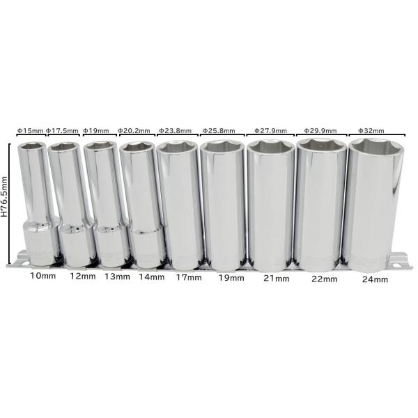 PWT 1/2インチ 12.7mm ディープソケット ソケットセット ディープソケットセット 9個組 6PT ソケットレンチ 六角 ソケット工具 IDS12SET