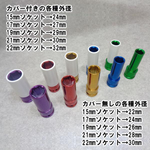 アルミホイール用薄口ソケットセット インパクトレンチ対応 ホイールナットソケット 15mm 17mm 19mm 21mm 22mm レターパック発送 60日安心保証付