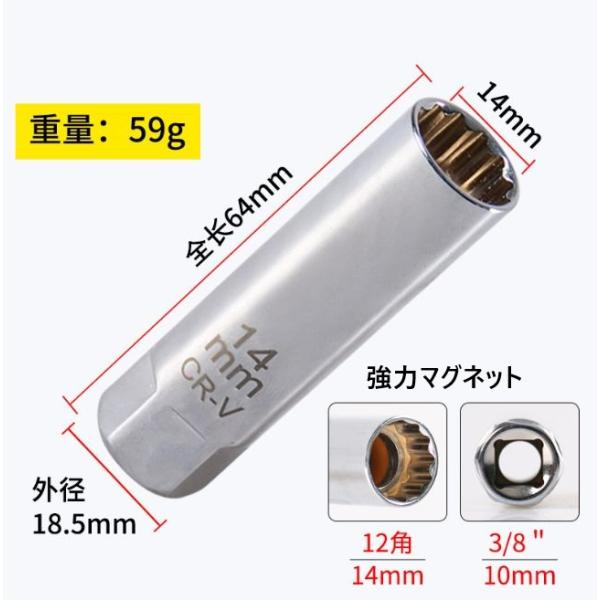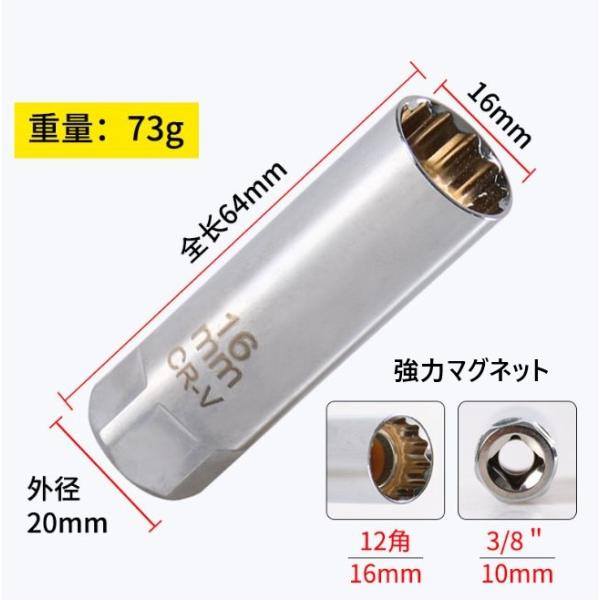 プラグソケット 16/14mm 12角 マグネット保持 薄型 3/8(9.5mm) ラチェット用 17mmスパナOK CR-V