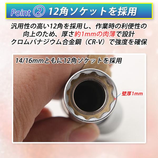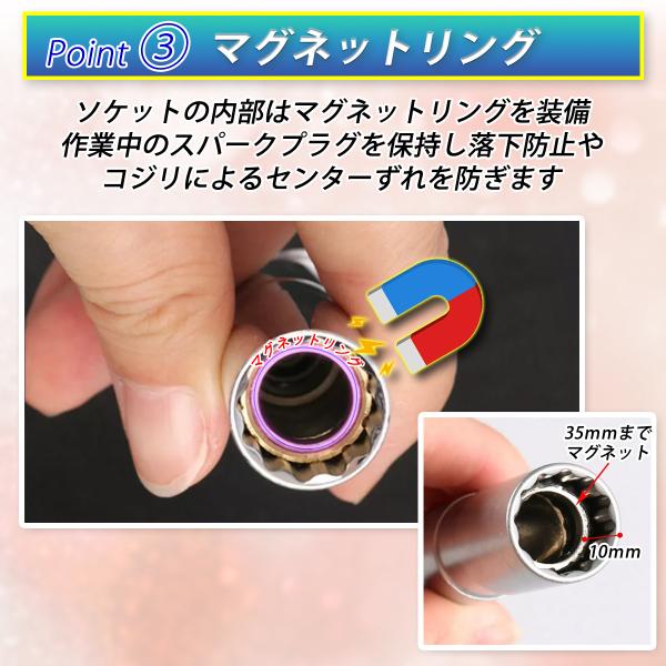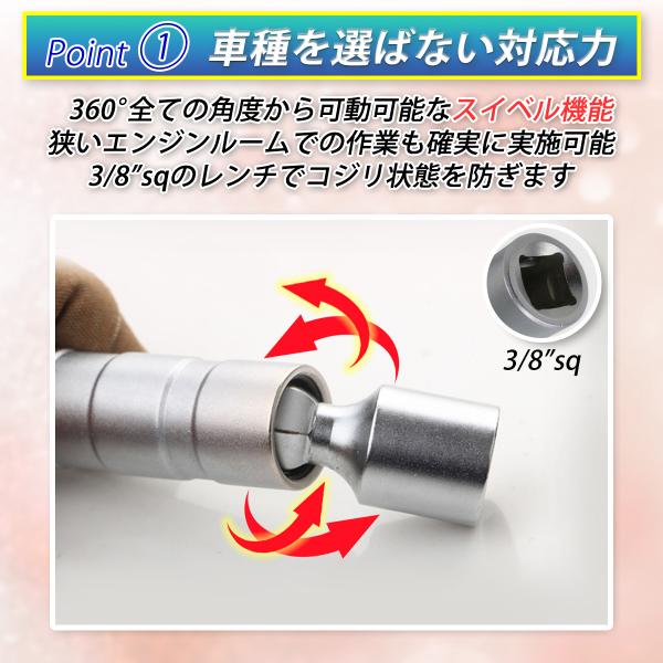 スパークプラグソケット レンチ プラグソケット 2本セット 14mm 16mm 3/8 マグネット 首振り ユニバーサルソケット
