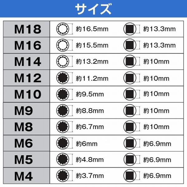 10本セット トリプルスクエア スプライン 12ポイント ソケット ビット 自動車 バイク メンテナンス 特殊工具 SST ケース付