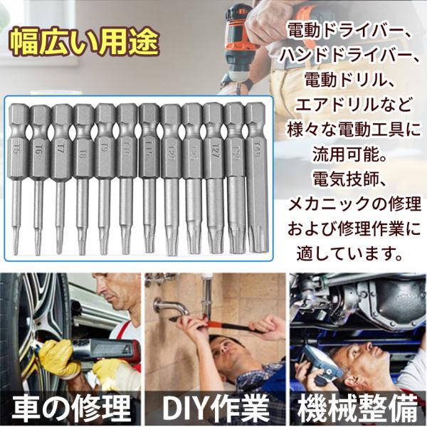 ヘクサロビュラ ビット 12本 セット 50mm ヘックスローブ 中空 トルクス 六角軸 ネジ T5-T40 電動 ドライバー インパクト 工具 DIY いじり止め 穴 TORX12